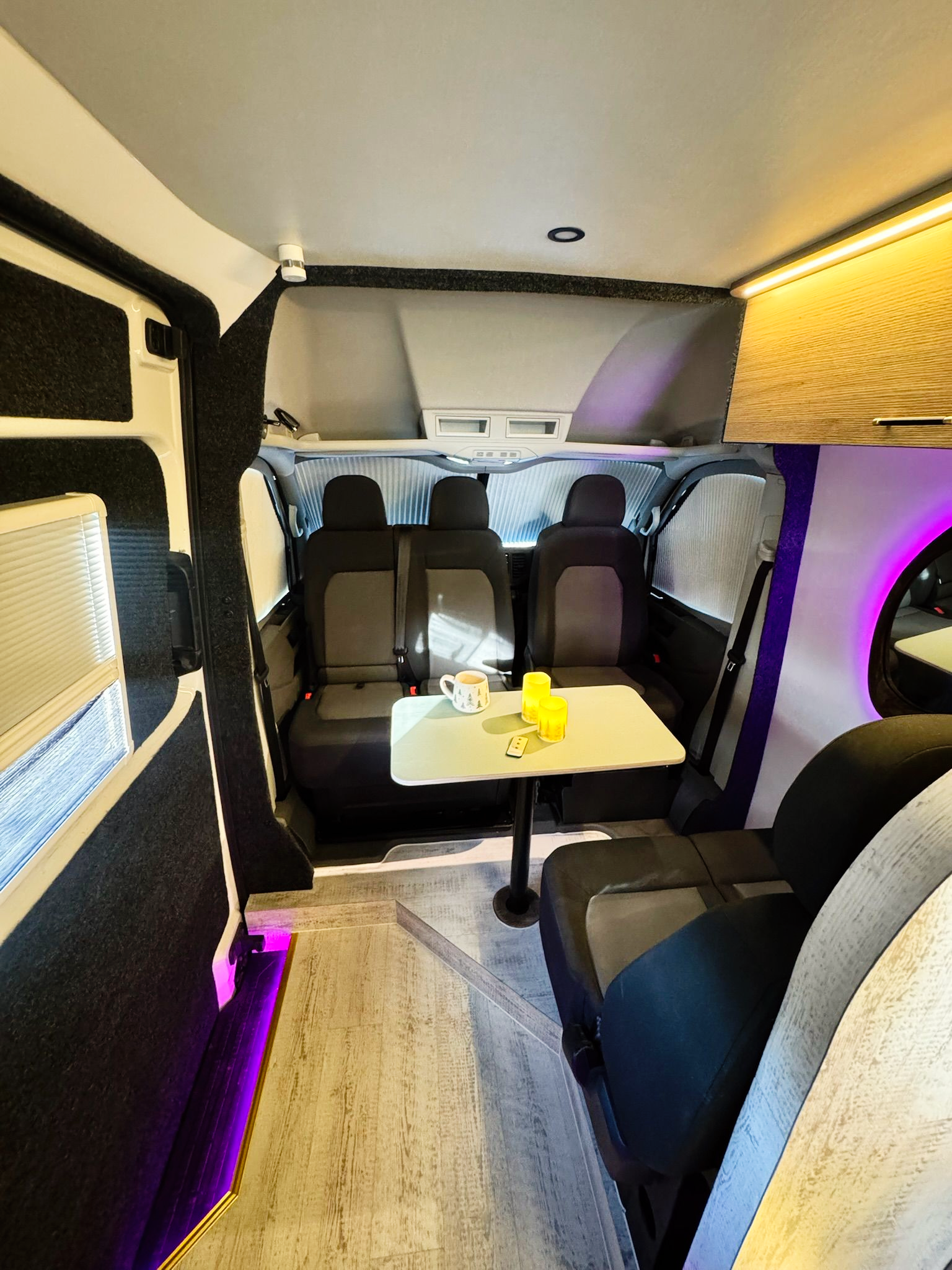 Key features: Family of 4 Design, Small Parking Friendly Van, Pop Top Roof & Bedroom, Wet Room, Cab Access, Multi Use Sofa / Travel Seats / Bed.