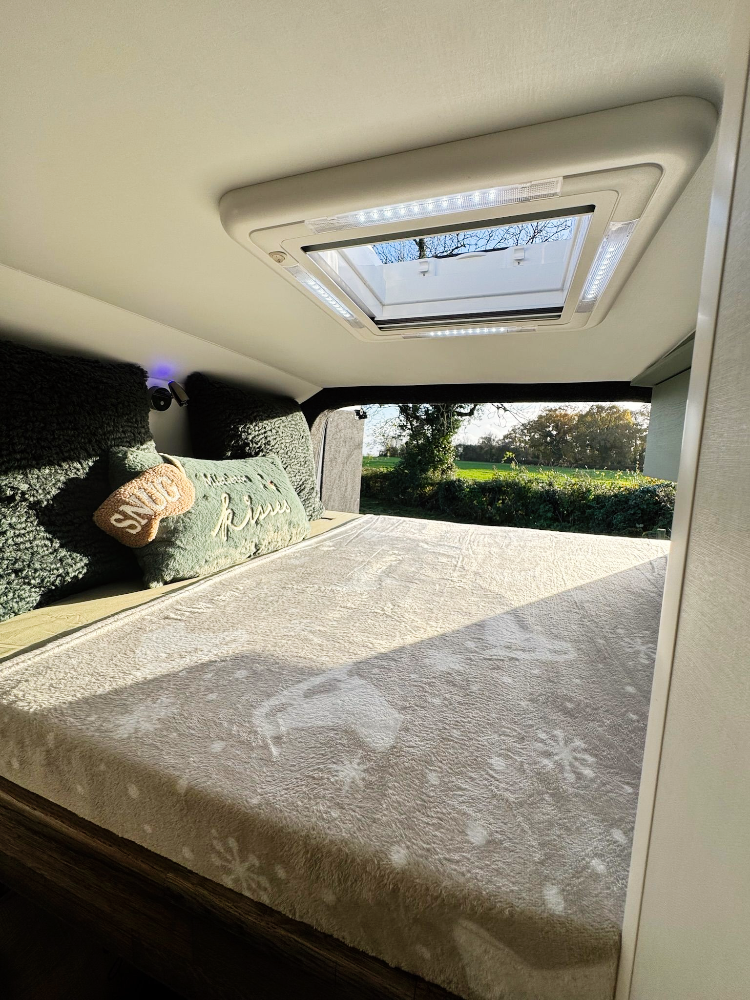 Key features: 3 Berth, Scandi Style, Coffee Station, Wardrobe, Large Kitchen, Storage Staircase Leading to Pop Top Roof & Bedroom.